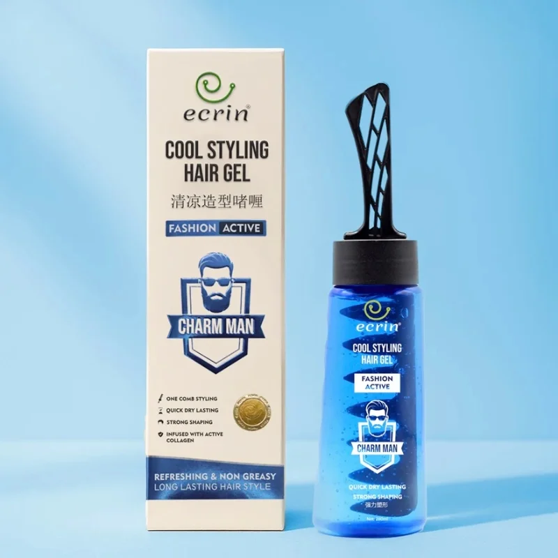 Style with confidence using ECRIN Cool Styling Hair Gel with Active Collagen, designed for strong hold, healthy shine, and all-day freshness. Enriched with Active Collagen, this gel nourishes and strengthens your hair while keeping it perfectly styled without stiffness. The cool refreshing effect gives your scalp a clean, energized feel after every use. Ideal for all hair types and daily styling, it tames frizz, adds texture, and provides a salon-quality finish at home.